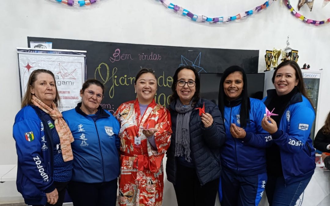 O encontro contou com a presença especial de Renata Sakamoto, da Oficina do Origami, que gentilmente compartilhou com o grupo os encantos da tradicional arte japonesa das dobraduras. O momento teve como destaque a confecção do Tsuru, ave símbolo de saúde, felicidade, longevidade e boa sorte, e proporcionou às participantes uma experiência sensível, criativa e de profundo significado simbólico.